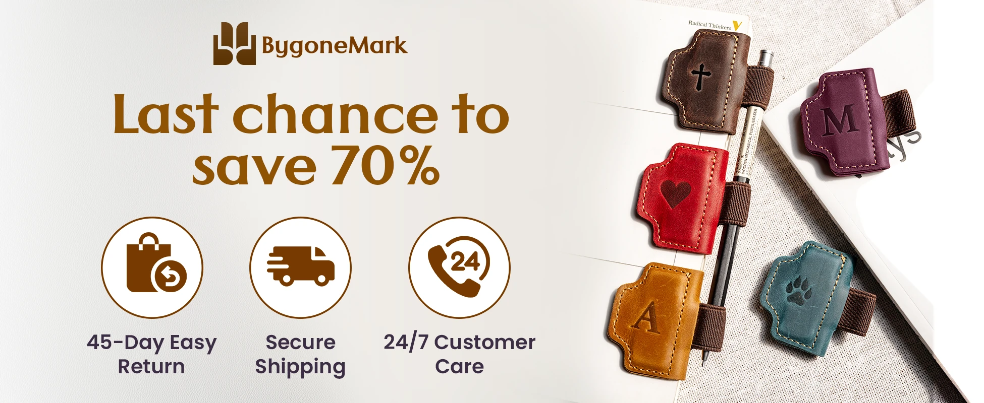 BygoneMark - Personalized Magnetic Leather Pen Holder Bookmark